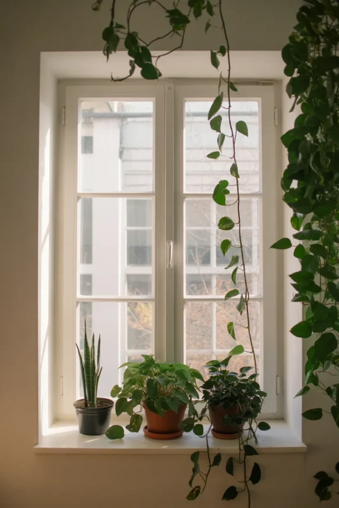 Windows are the perfect spot for pothos to thrive. Let the vines frame your windows naturally for a soft, dreamy effect.