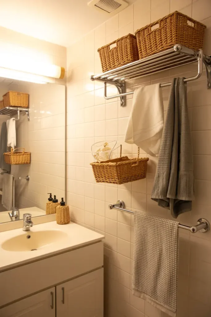 In smaller spaces like bathrooms, vertical storage is essential. You can explore more ideas for compact spaces here: