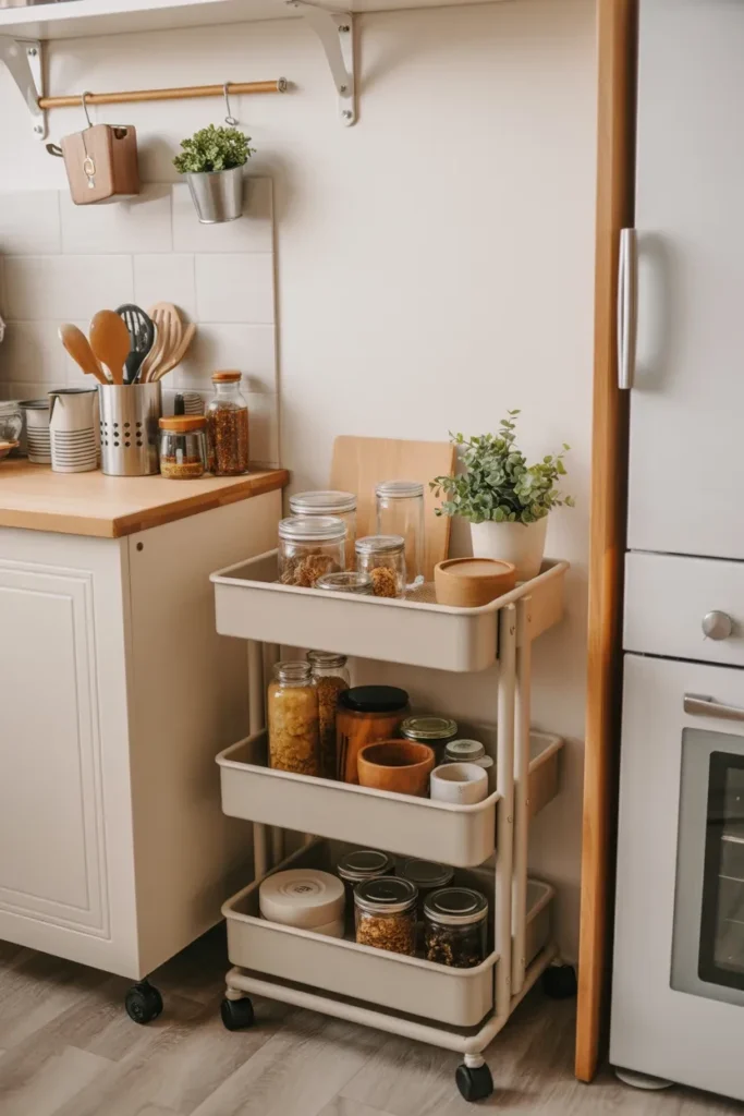 IKEA utility carts are incredibly versatile. You can use them in the kitchen, bathroom, office, or even as a mini coffee bar.