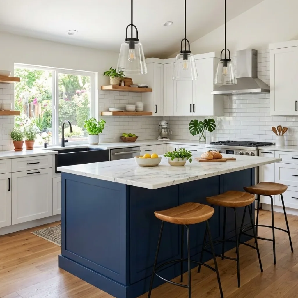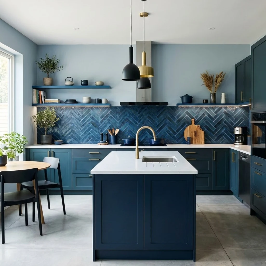 At the end of the day, your kitchen should reflect your taste and lifestyle. Maybe you start small with a blue backsplash, or maybe you go all-in with navy cabinetry.