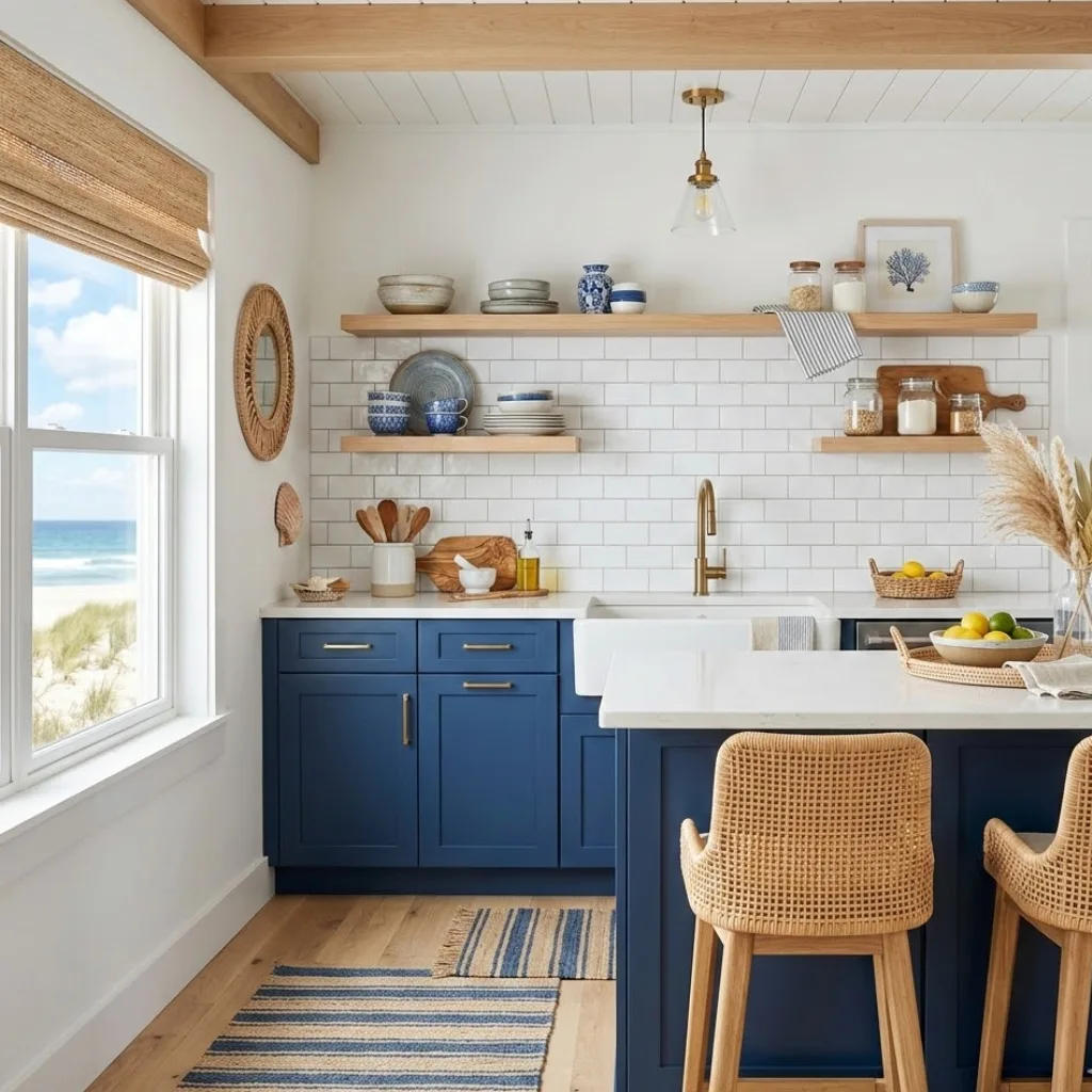3. Blue and White Coastal Kitchen Style