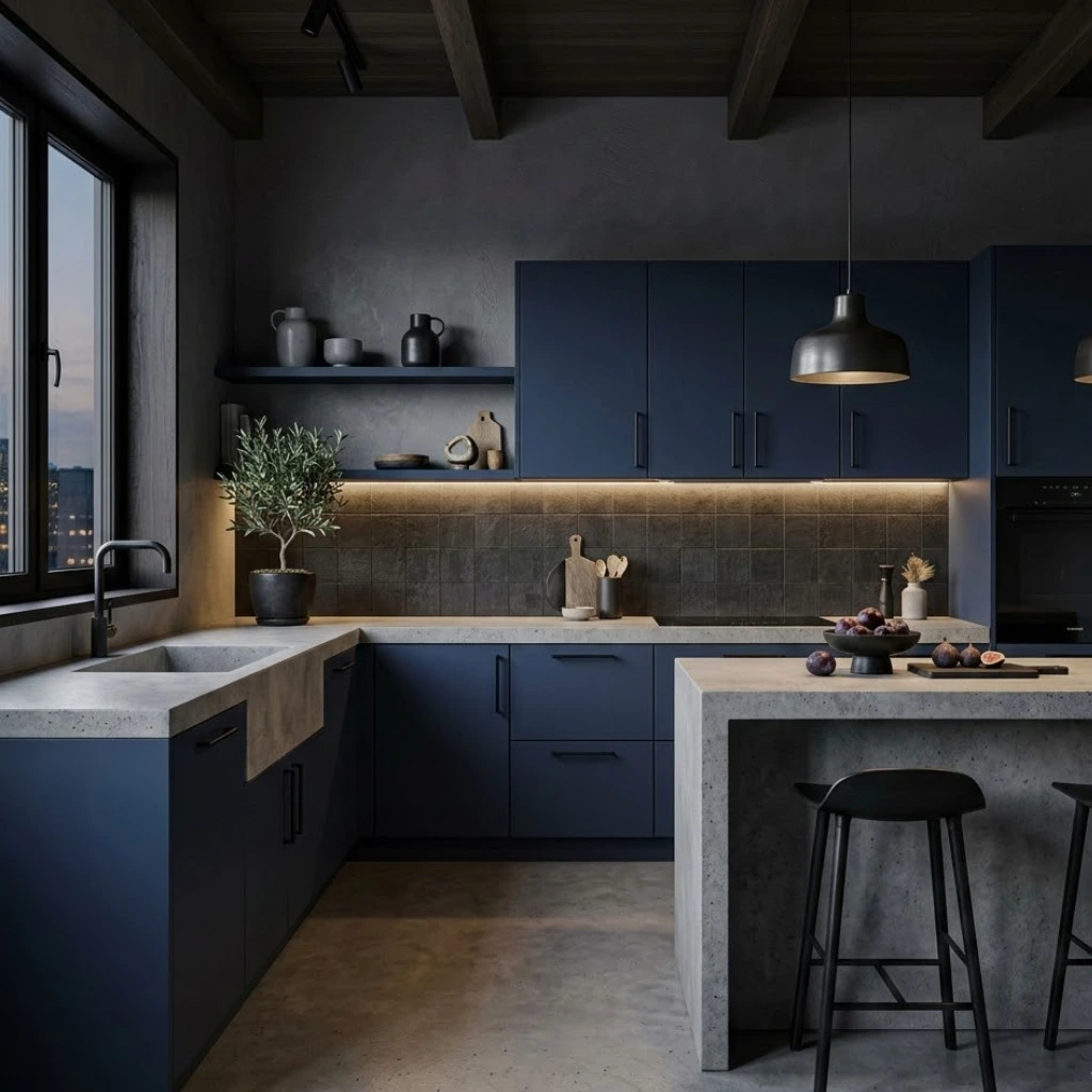 6. Matte Blue Cabinets for Modern Style