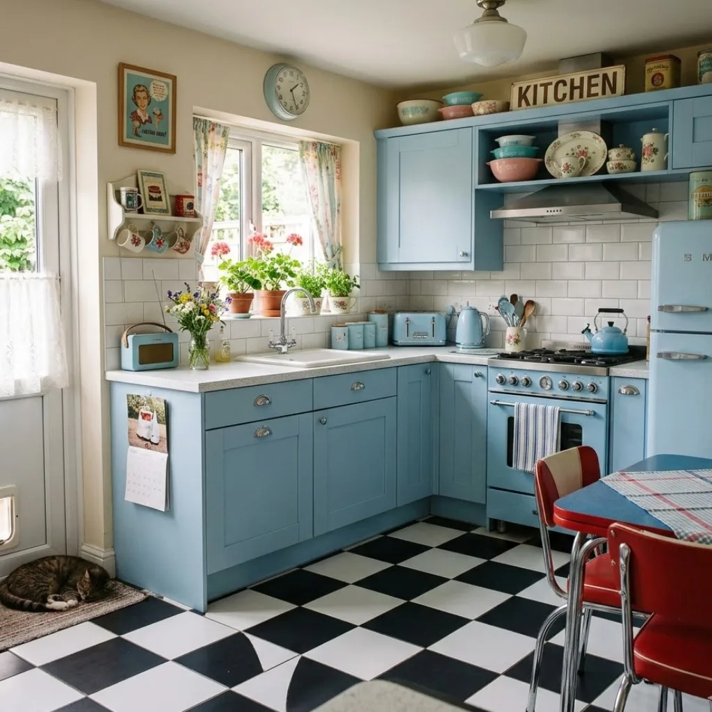 Vintage kitchens are making a comeback, and powder blue is the perfect retro color.