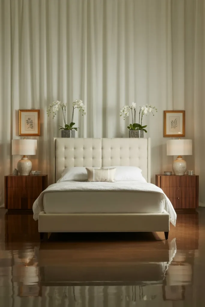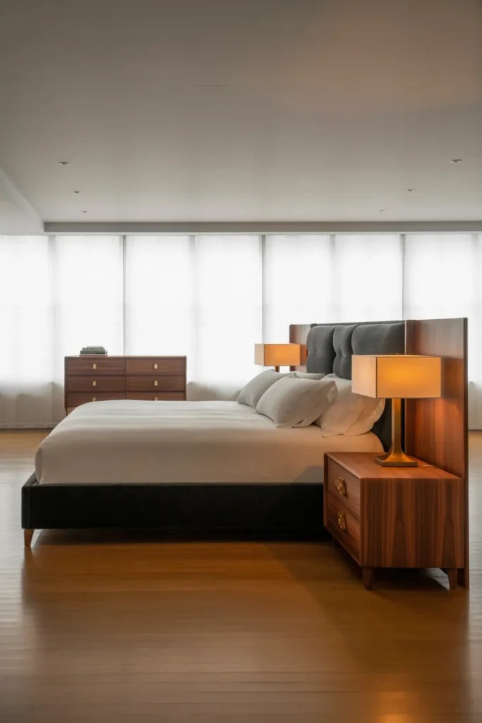 You don’t need a perfectly identical setup, but some visual balance helps a lot. Matching nightstands, paired lamps, or evenly spaced art can make the room feel intentional in seconds.