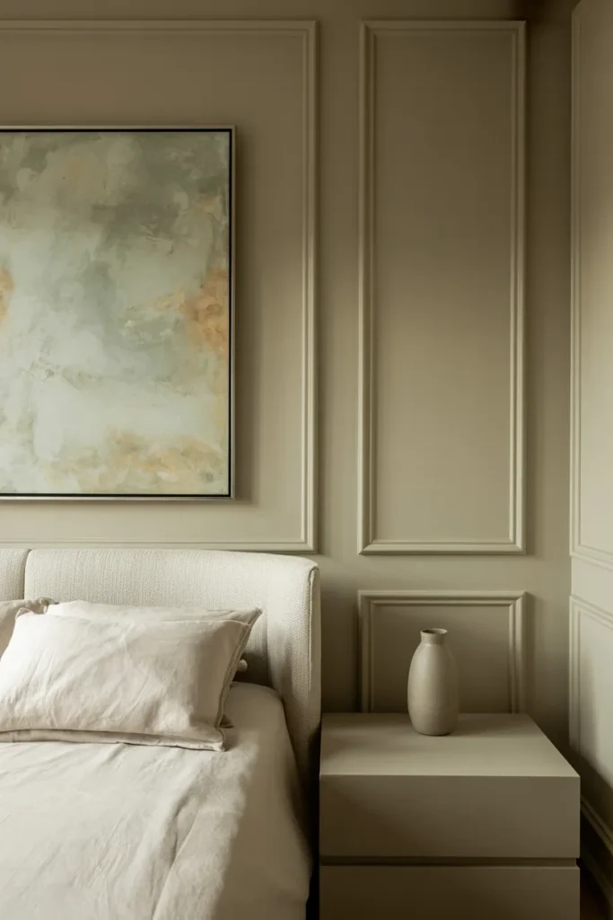 If you want one of the easiest Classy Bedroom Ideas to pull off, start with color. A bedroom instantly looks more sophisticated when the palette feels controlled. Think warm white, soft beige, taupe, greige, muted sage, dusty blue, or charcoal.