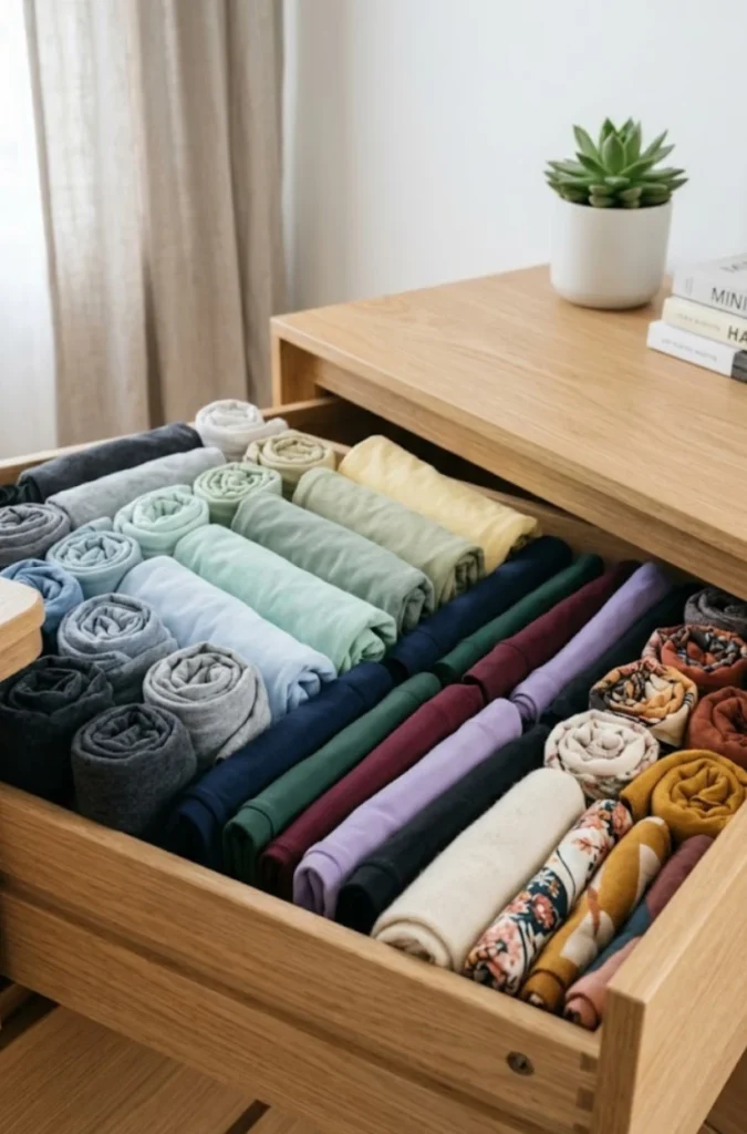 Okay, I know folding seems neat, but hear me out—rolling clothes saves tons of space and keeps things visible.