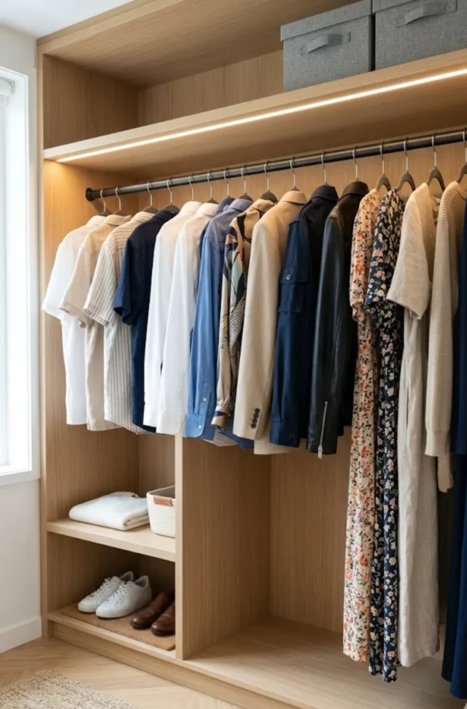 - Color code your clothes: It makes picking outfits way faster and visually appealing.