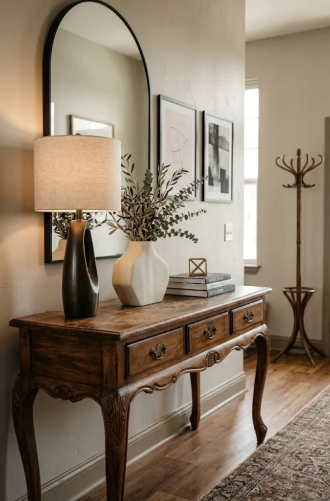 Pro Tip: Use a few decorative trays or bowls to corral loose items like mail and keys. A little bit of organization goes a long way!