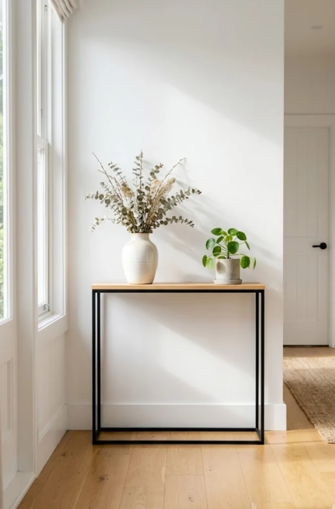 Less is more—and if you’re the type of person who loves clean lines and simplicity, this style might be for you. A minimalistic console table in your hallway is like a breath of fresh air. It brings calmness and order, setting a sleek tone for your home right as you step inside.