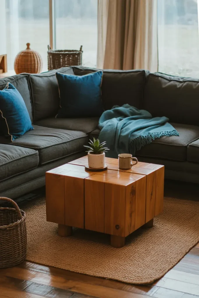 Let’s be real for a second. Gray and blue can look gorgeous, but if you go too hard without balance, the room can start to feel chilly. That’s where warm wood tones come in. They bring softness, warmth, and that “someone actually lives here” energy.