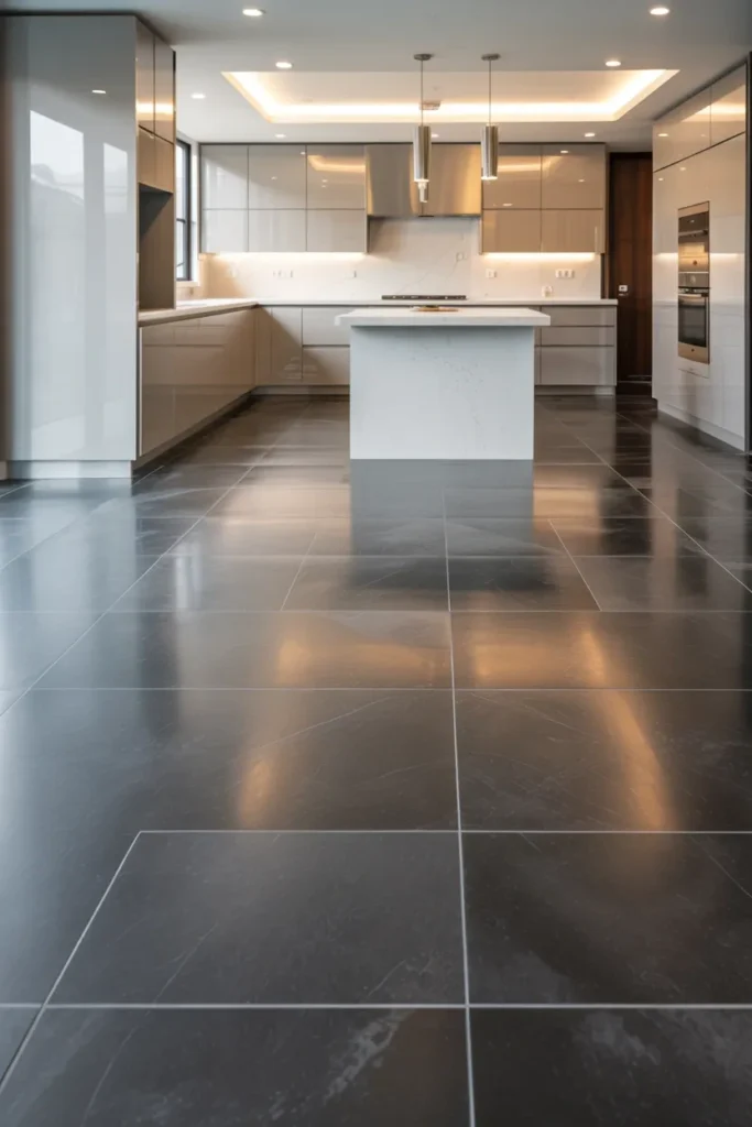 If you want a bold, high-end look, dark gray flooring delivers. It adds depth and contrast, especially when paired with lighter walls or furniture.