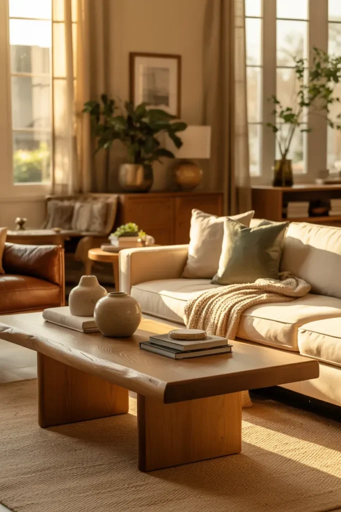 This works especially well if you already have a neutral base. A cream sofa, wood coffee table, and warm rug create a calm background. Then green can show up in just a few places and instantly make the space feel fresher.
