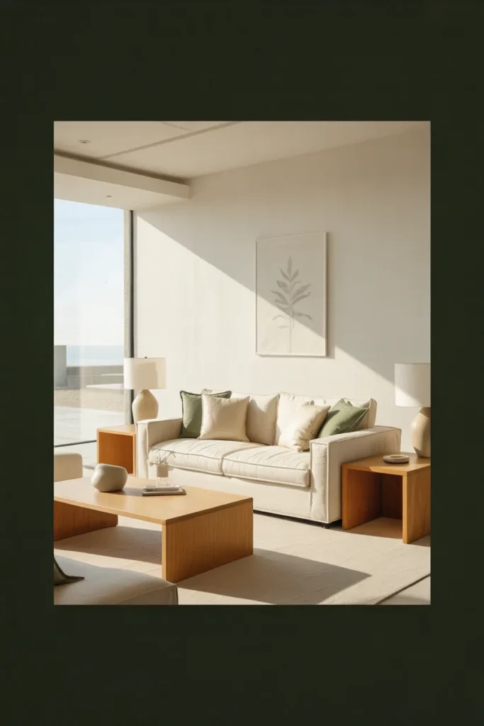 Pairing green with warm neutrals makes it feel balanced and inviting. Think oatmeal, sand, cream, camel, taupe, and natural wood. These tones soften green and make it feel livable.