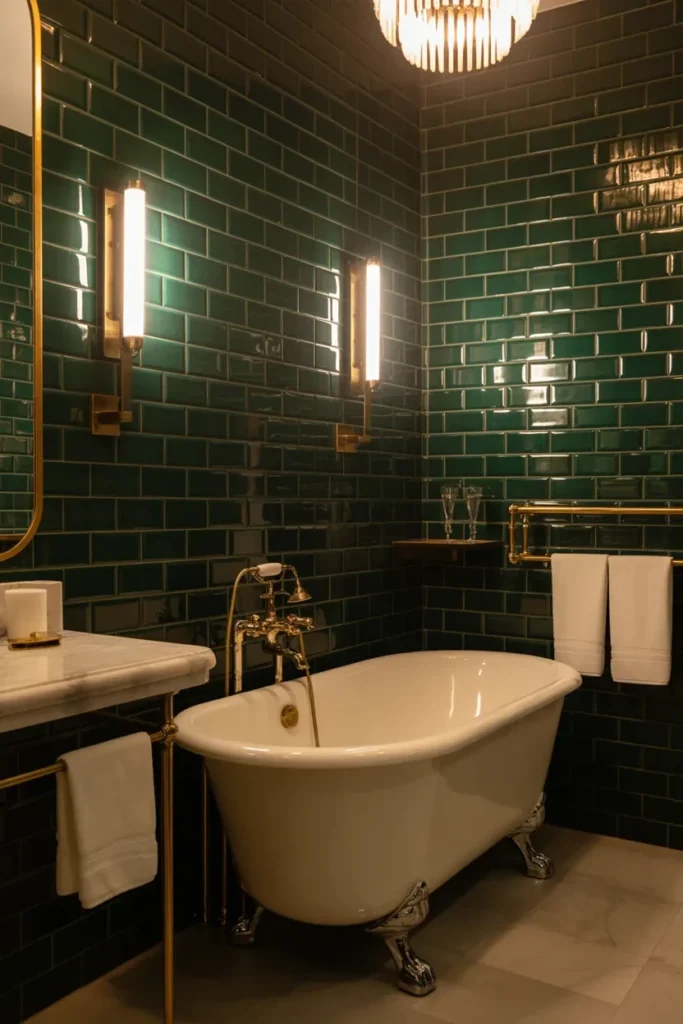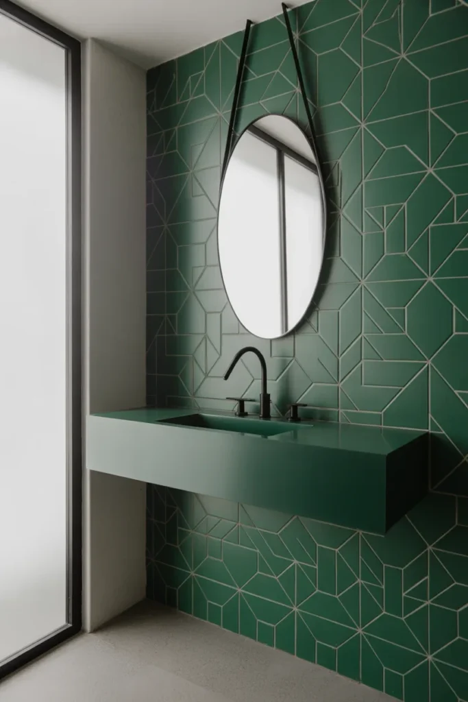 Pro Tip: If your bathroom is small, combine emerald tiles with lighter walls or mirrors to avoid a cave-like feel.