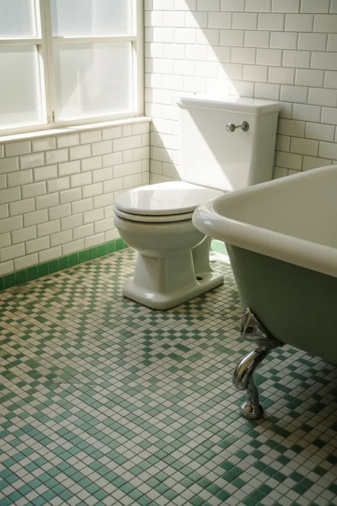 Remember the 70s? Well, it’s back—but with a modern twist. Green and white checkerboard tiles bring that playful retro vibe without feeling kitschy.