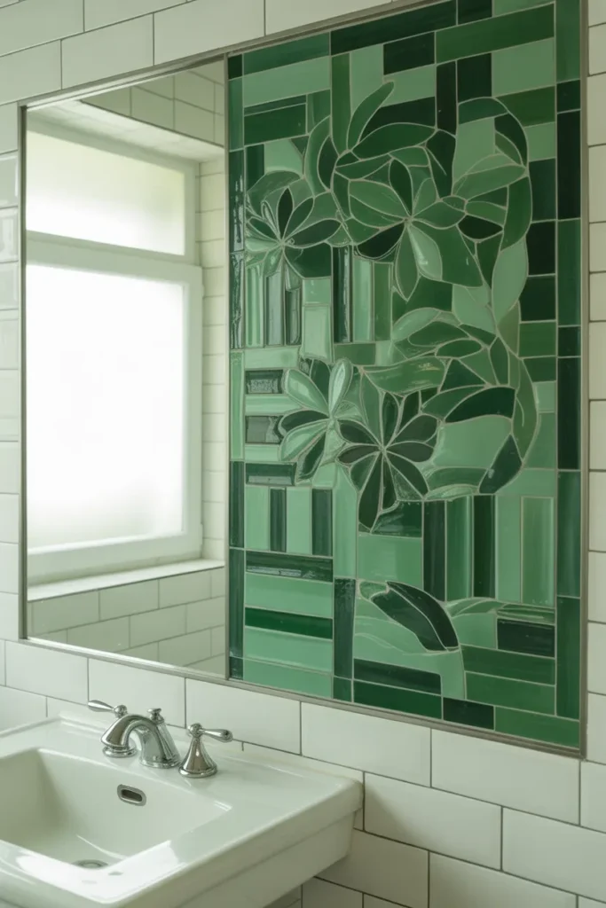 Why settle for boring walls when your bathroom can double as an art gallery? Certain green tiles can be arranged into floral or abstract murals.