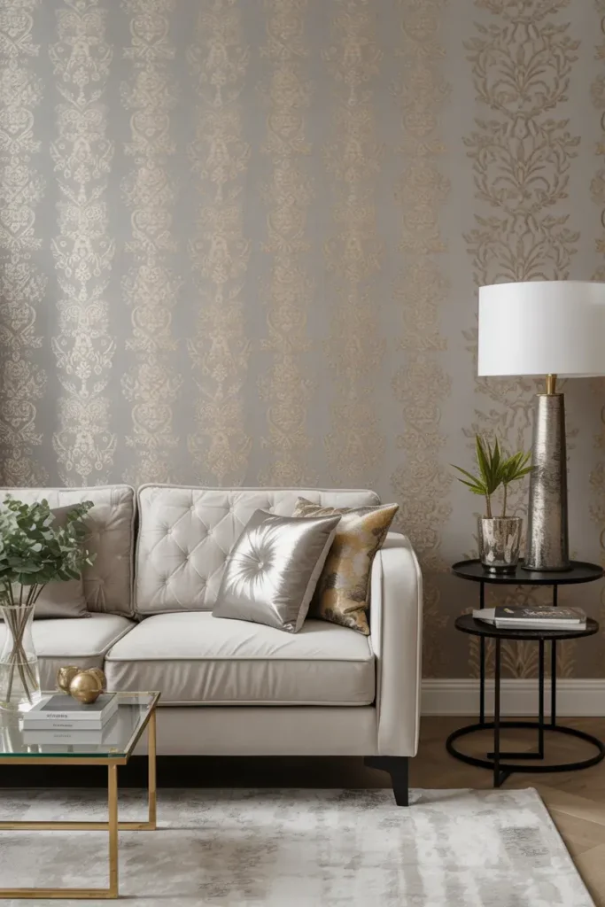 Last but definitely not least, let’s talk about metallic accents. From silver to gold and even rose gold, metallic wallpapers reflect light and add a touch of luxury. These wallpapers are all about bringing a little shimmer into your life.