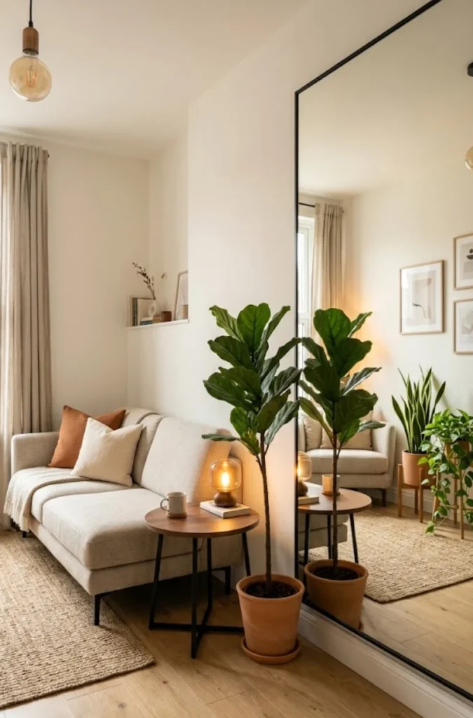 Mirrors trick the eye, making the room feel more open without moving a single piece of furniture. It’s my favorite “budget-friendly illusion.”