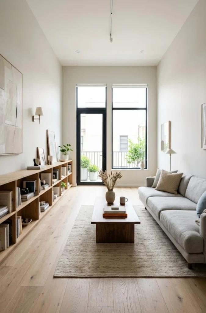 One of the biggest mistakes in a narrow living room is letting furniture float randomly. You want purpose and flow.