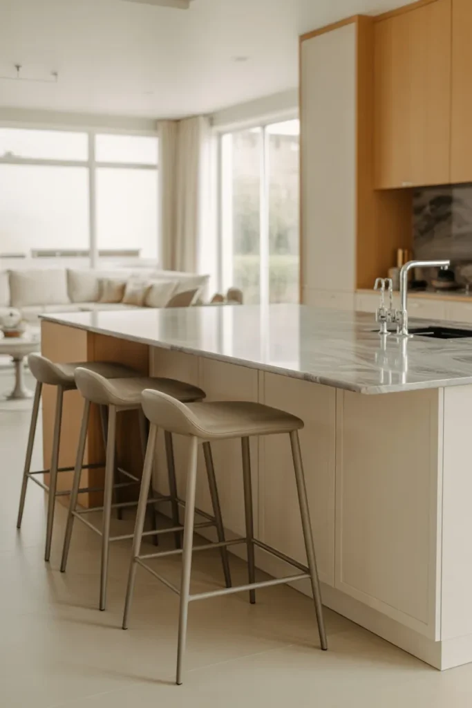• Open-back chairs: For islands or dining tables, these help maintain flow.