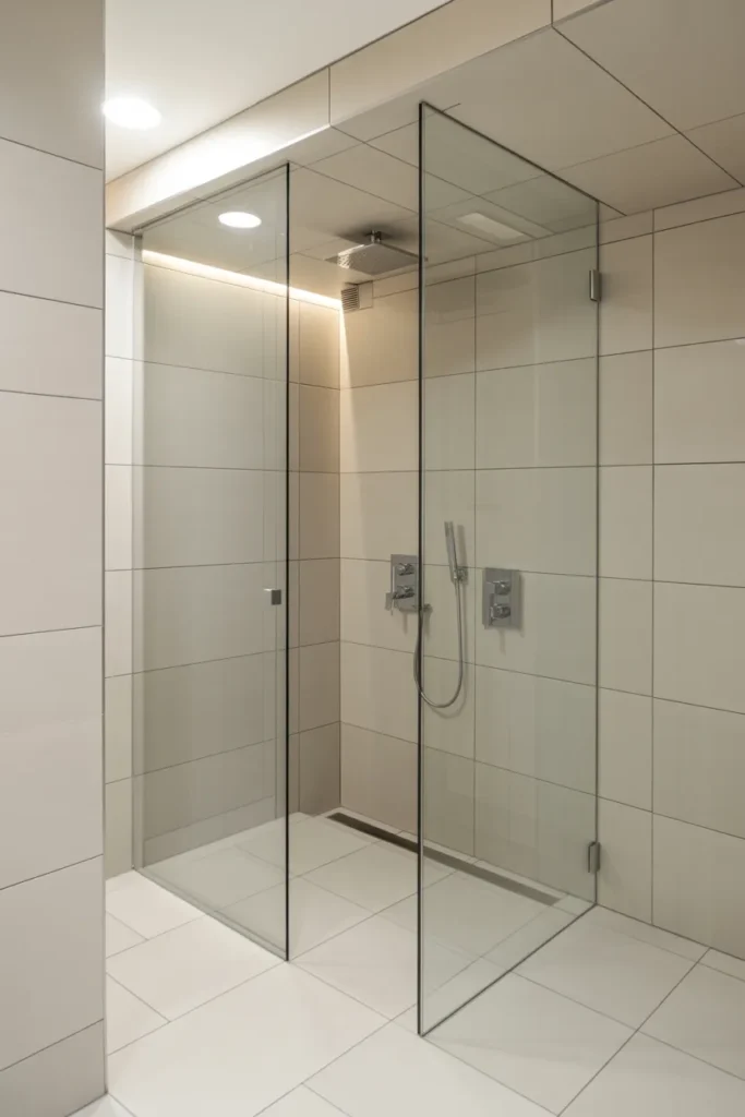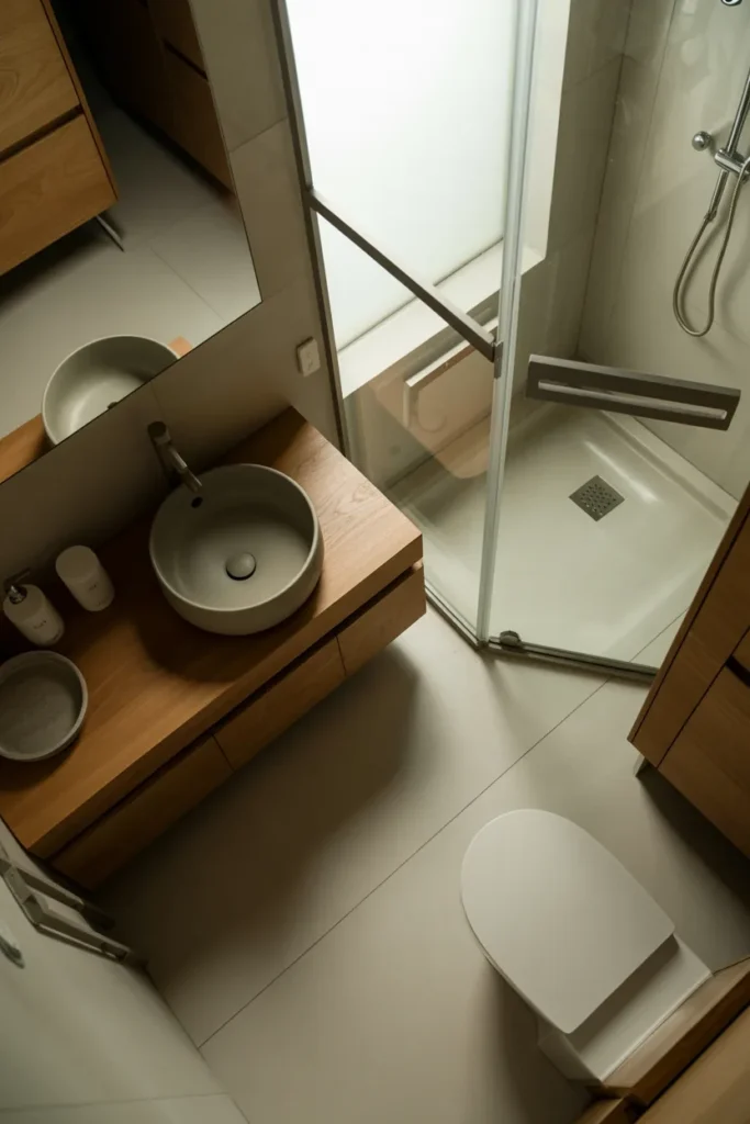Let’s talk about shower curtains. They can be cute, sure, but in a tiny bathroom they often chop up the room visually. A clear glass shower door keeps sightlines open and helps the whole space feel larger.
