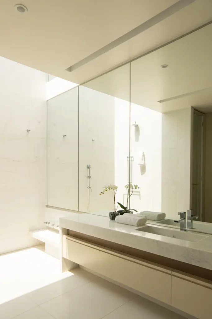 If your bathroom has limited natural light, this idea becomes even more useful. More reflection means more brightness, and more brightness means a more open feel.