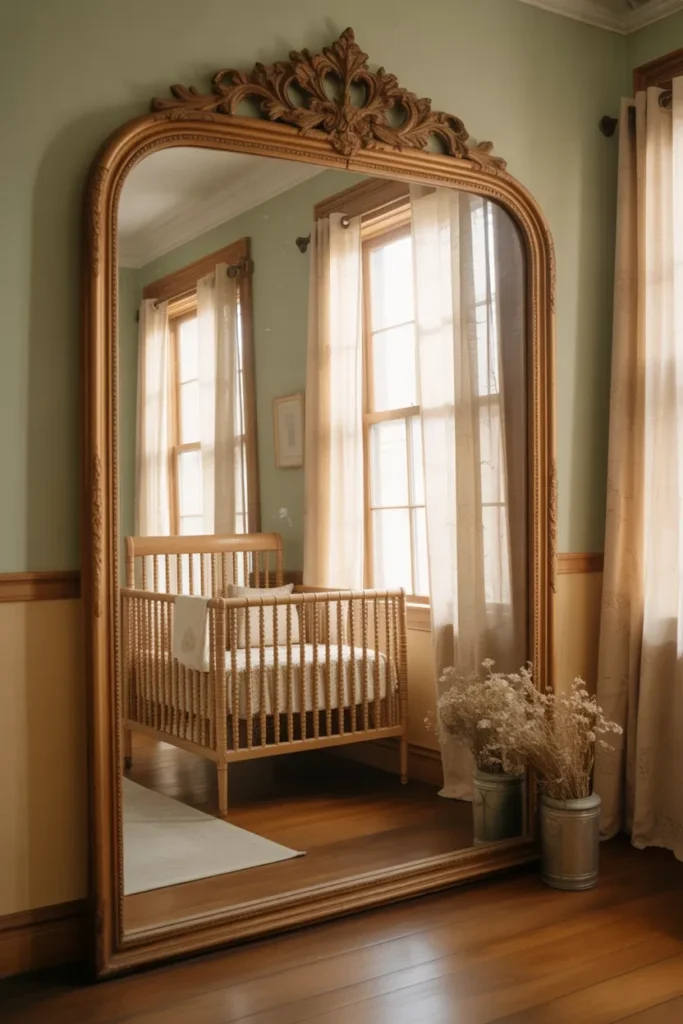 It may sound simple, but a well-placed vintage mirror can work wonders in a nursery.