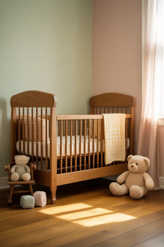 Pro Tip: Look for cribs with a natural finish or a soft pastel paint. Avoid overly glossy or plastic finishes—they take away from that authentic vintage feel.