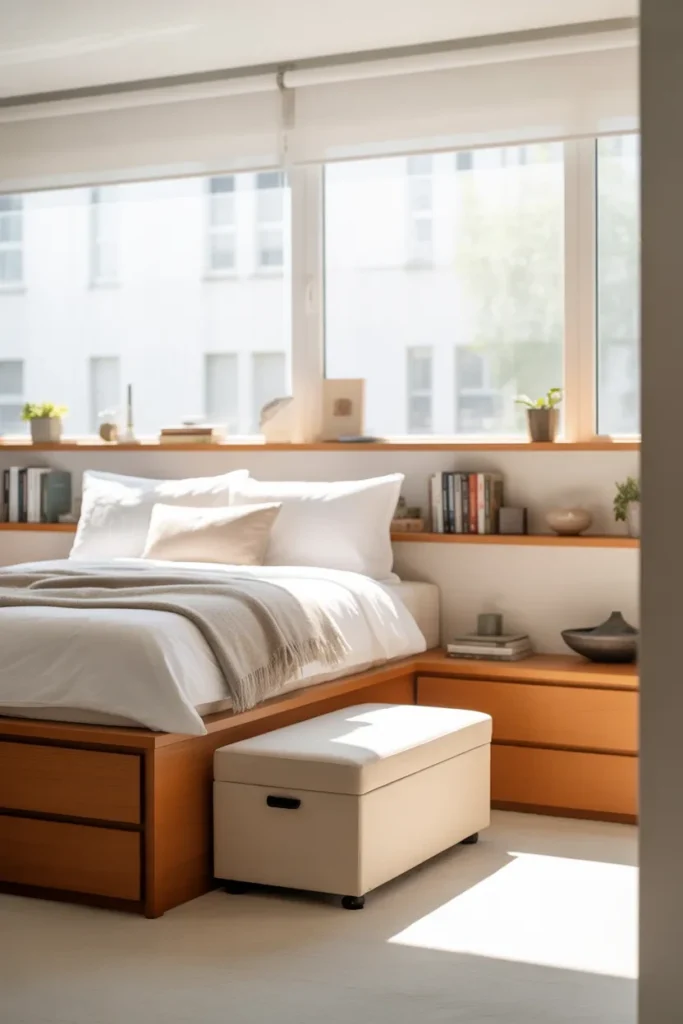 • Ottomans or benches with storage: Placed at the foot of your bed, they double as seating and storage.
