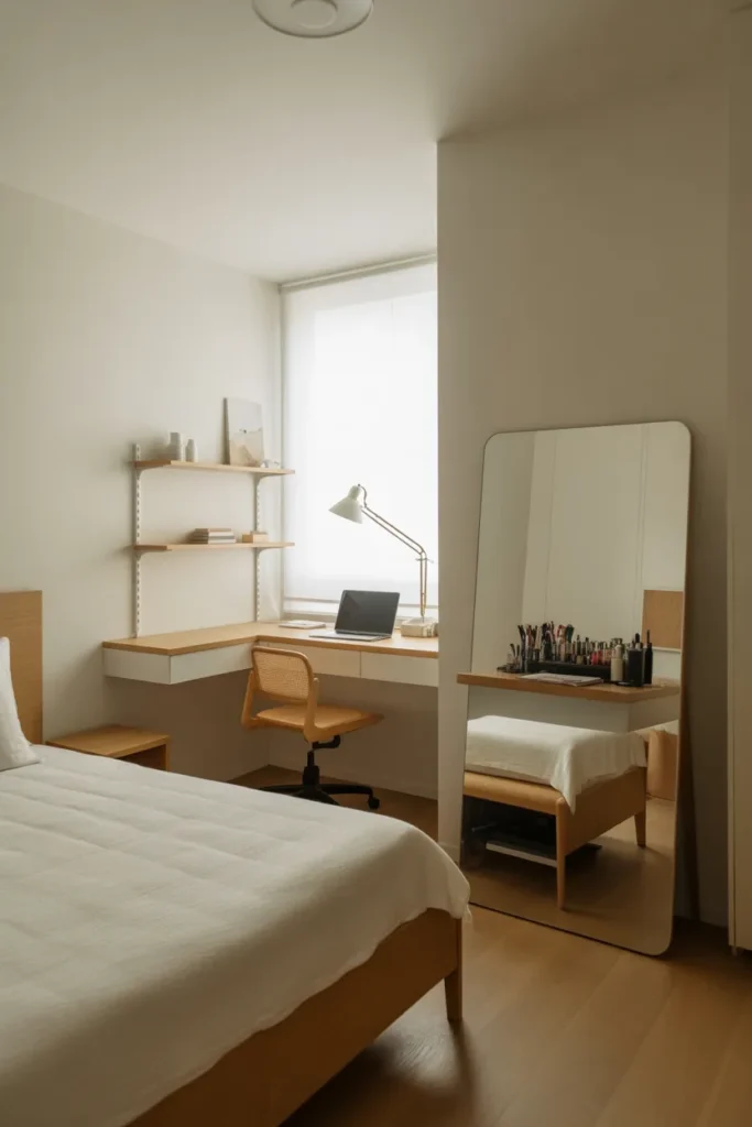 IMO, mirrors are the ultimate small-bedroom hack. You can literally double your space visually without moving a thing.